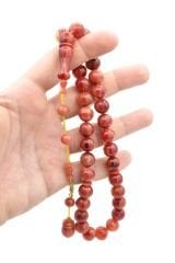 Ahmet Emin İmzalı İri Boy Küre Kesim Hareli Pembe Sıkma Kehribar Tesbih