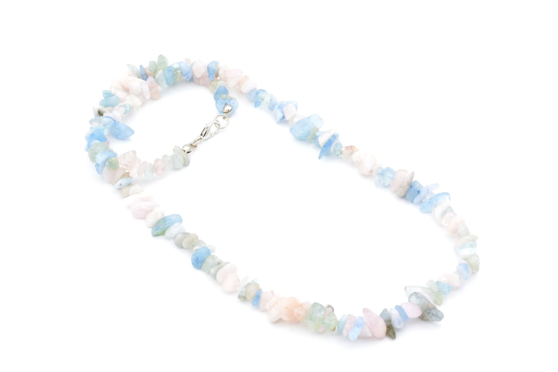 Doğal Kırık Taş Akuamarin Ve Morganit Taşı Kolye
