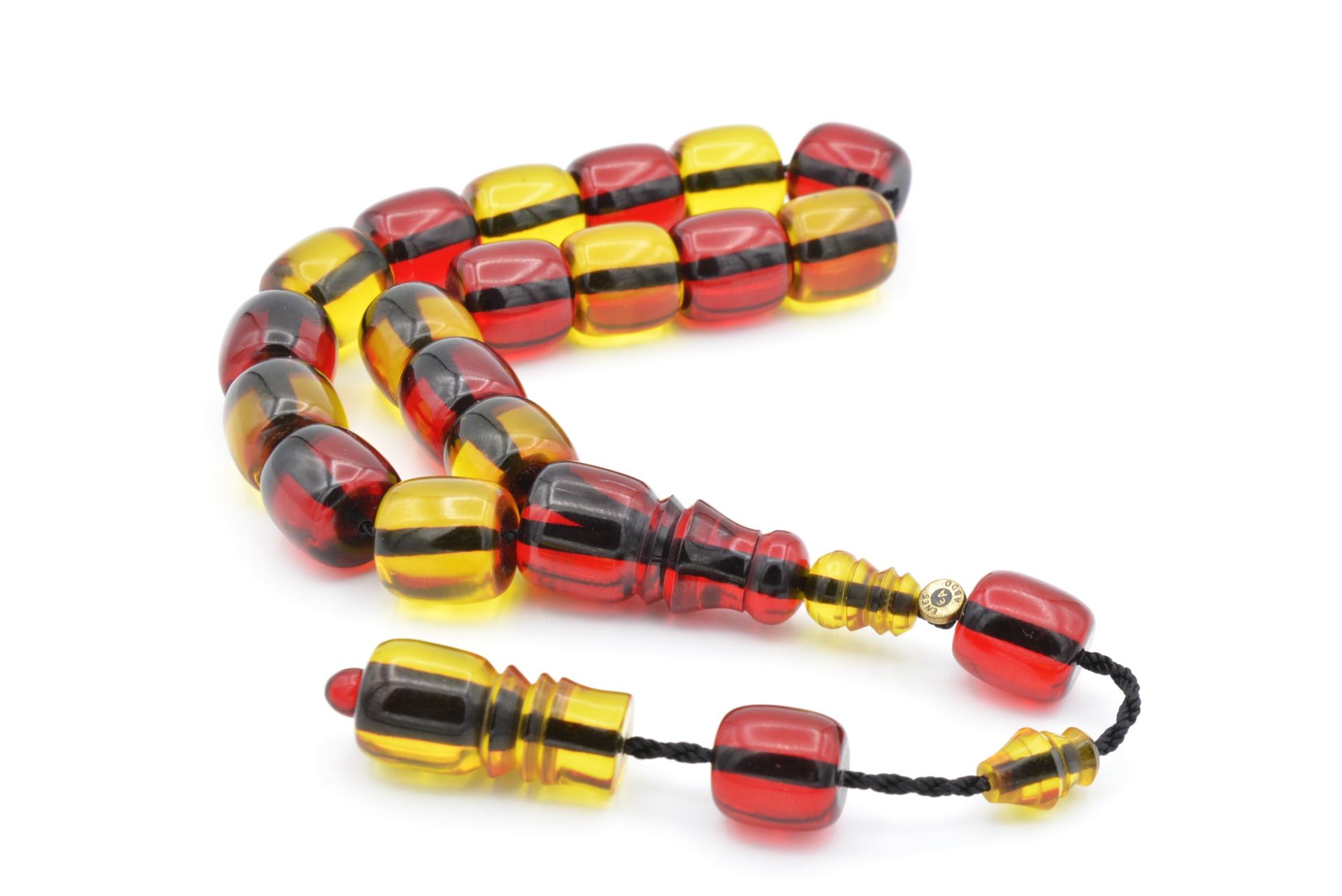 Enes Abdo İmzalı Fıçı Kesim Sarı Kırmızı Sıkma Kehribar Efe Maskot Tesbih