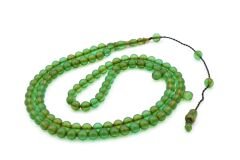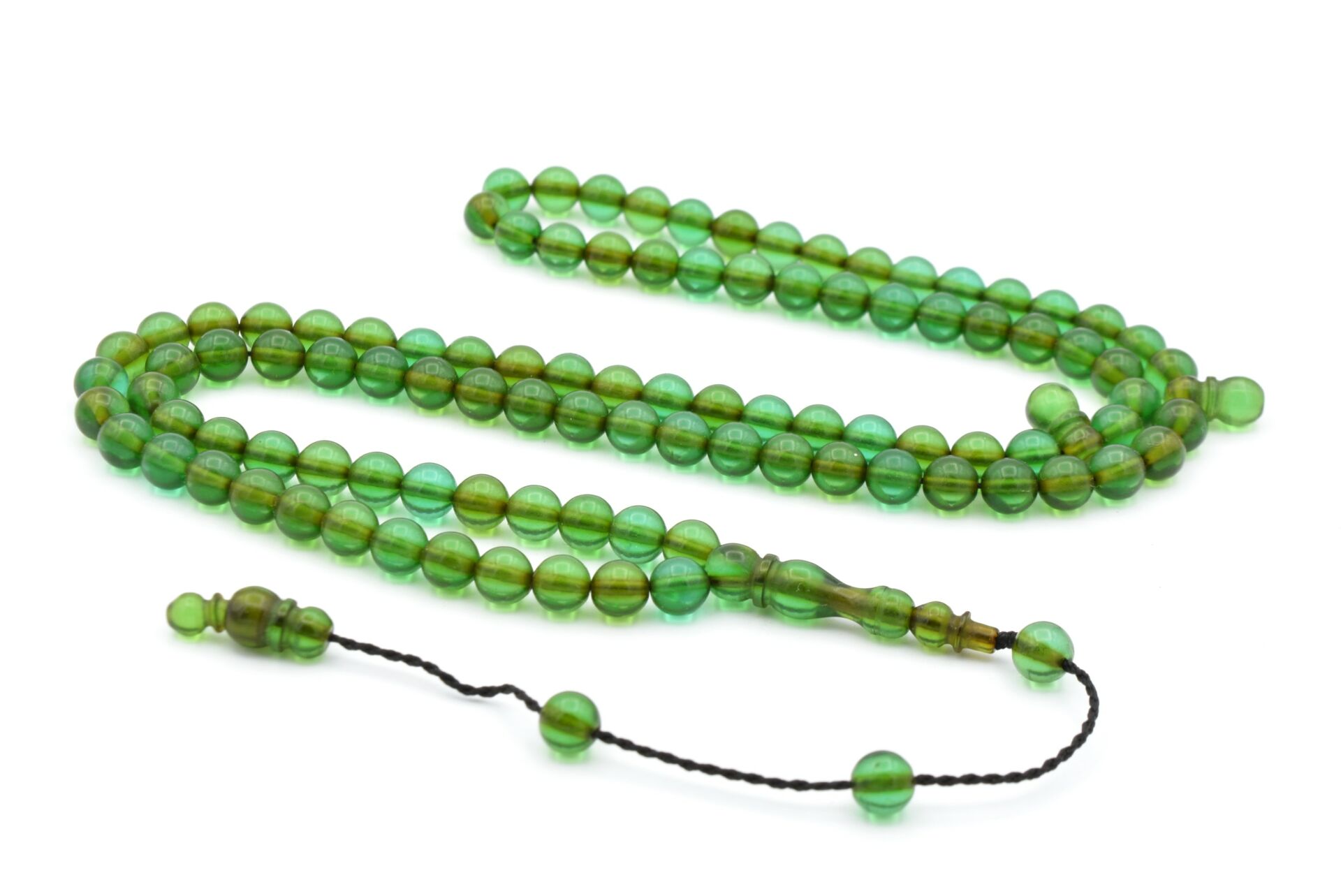 Küçük Taneli Küre Kesim 99 luk Yeşil Sıkma Kehribar Tesbih