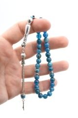 Özel Gümüş Kaplama Kamçılı Hakiki Doğal Apatit Taşı Tesbih 7.5 Mm