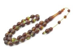 Sistemli Beyzi Kesim Kahverengi Yeşil Toz Pres Kehribar Tesbih