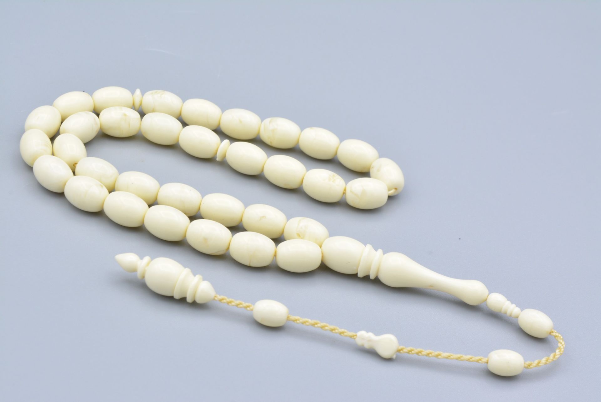 Sistemli Kapsül Kesim Hareli Beyaz Toz Kehribar Tesbih