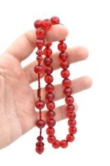 Şükrü Baba İmzalı Kalem İşçilikli Kırmızı Sıkma Kehribar Tesbih 014