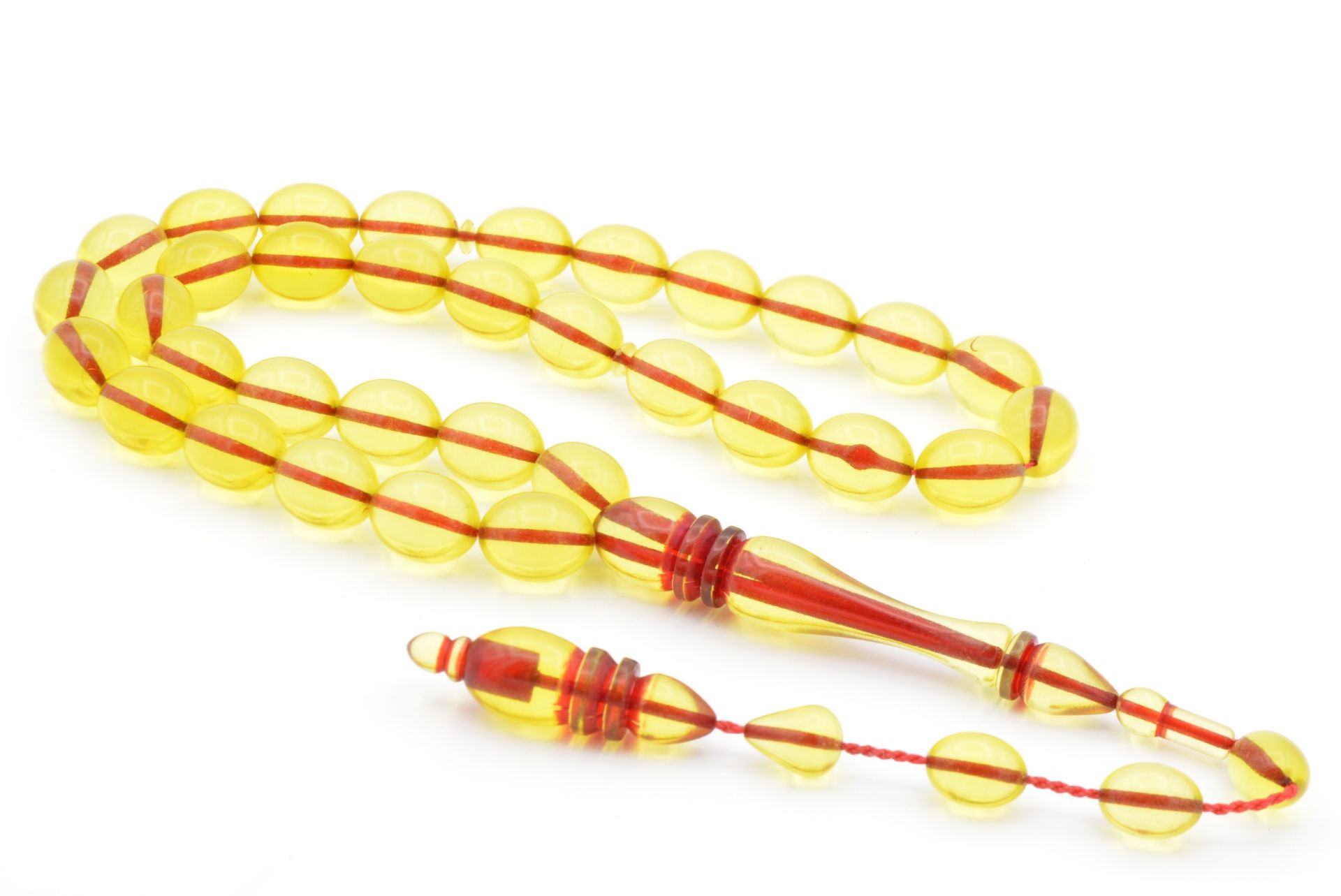 Usta Işi Arpa Kesim Zeytinyağı Rengi Toz Pres Kehribar Tesbih Dev Boy