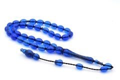USTA İŞİ SİSTEMLİ ARPA KESİM LACİVERT TOZ PRES KEHRİBAR TESBİH